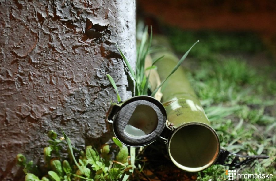 Відстріляний тубус гранатомета лежав через дорогу від будівлі. На тубусі спиляні номери, тож походження гранатомета неможливо встановити.