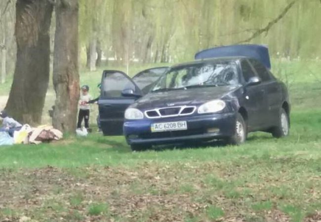 У Луцьку компанія людей влаштувала пікнік та припаркувала автомобіль на траві посеред парку 900-річчя.