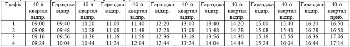 Розклад руху автобусів за маршрутом "Конякіна (40-й квартал) – Гаразджа (кладовище)" на 15.04.2018 р.