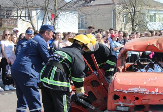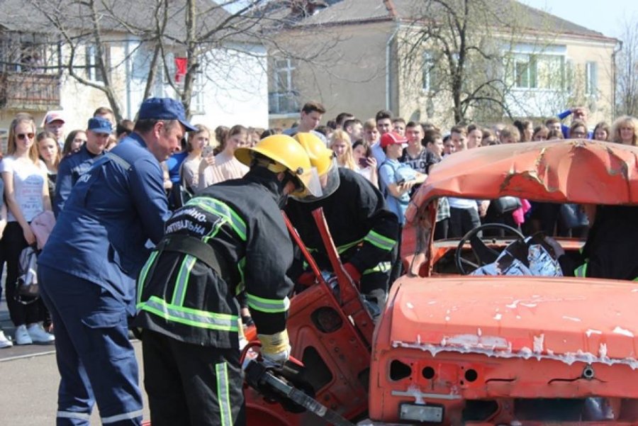 Для них фахівці ДСНС продемонстрували, як за допомогою спеціального гідравлічного інструменту евакуюють потерпілого з автомобіля, що потрапив у аварію, різноманітні способи гасіння пожеж, а також показали як правильно накладали джгути.