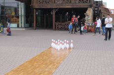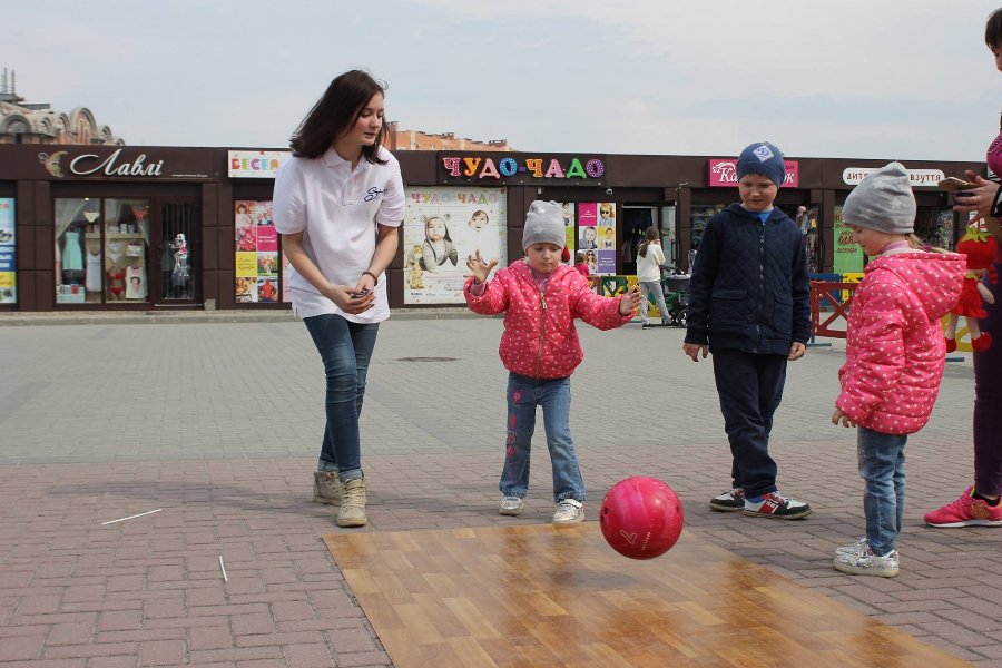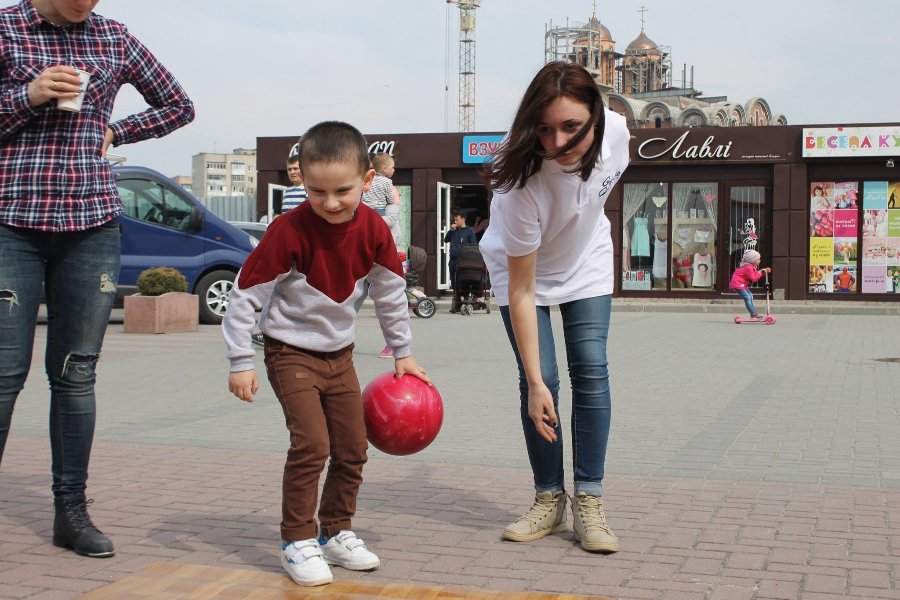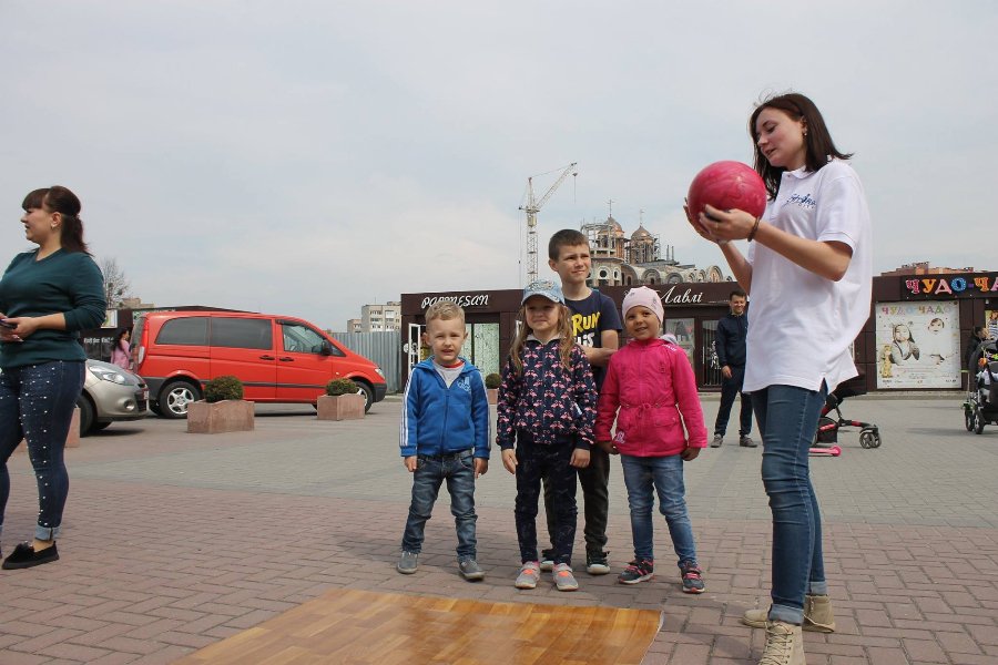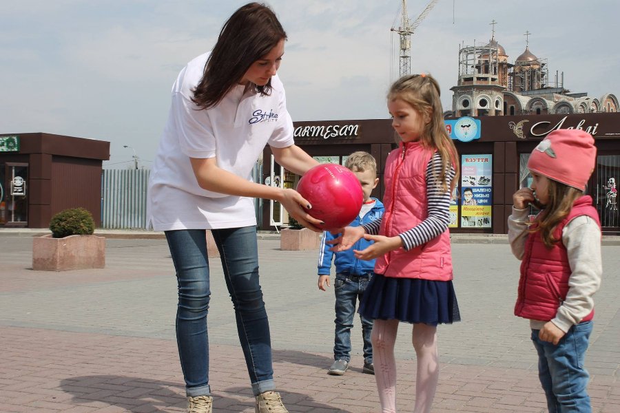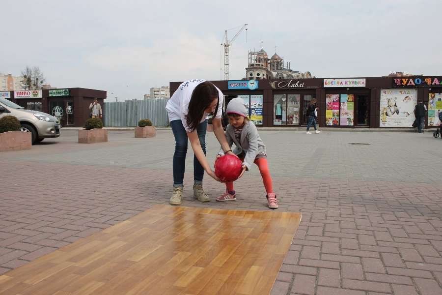 Боулінг-клуб «StrikeCity» навчає малечу, як правильно збивати кеглі. Цими вихідними виїзна школа працювала на свідому повітрі біля ресторації «Брама».