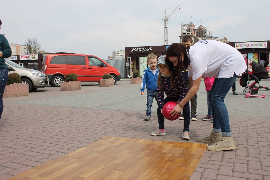Оскільки у Луцьк нарешті прийшло тепло, то на вихідних школа боулінгу відбулася на свіжому повітрі. Малеча мала нагоду повчитися, як правильно збивати кеглі, сфотографуватися з персонажами дитячого розважального центру «Figli Migli» та отримати подарунки.