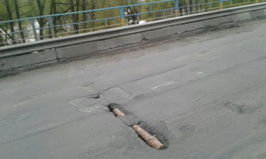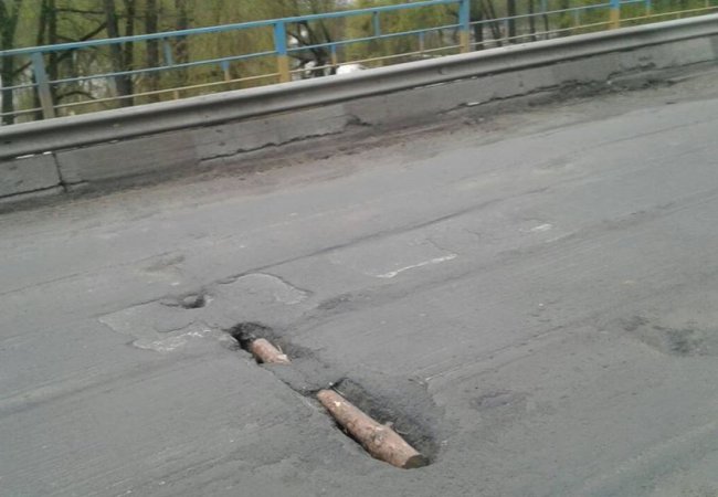 У селищі Колки, що на Волині, дорогу на мості «залатали» поліном.
