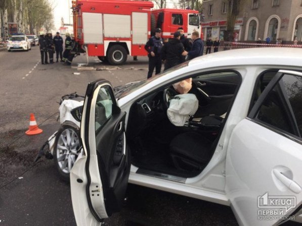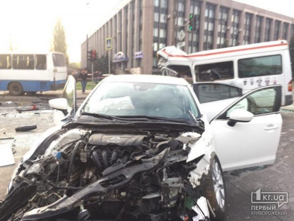 "Зіткнення сталося близько 6 ранку біля виконкому. Авто Mazda зіткнулося з маршруткою. Його винесло на зустрічну руху. Сталося зіткнення з автобусом АрселорМіттал Кривий Ріг", - йдеться в повідомленні.