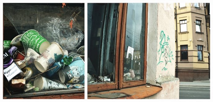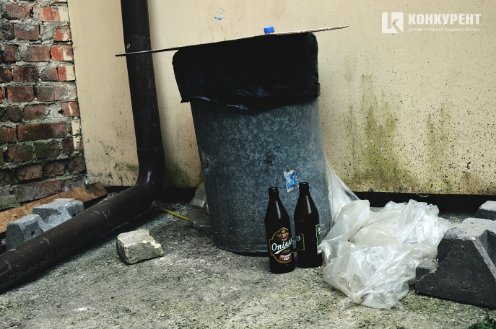 Приміщення поблизу Волинського окружного адміністративного суду стало своєрідним музеєм використаних паперових стаканів та пачок з-під цигарок. Тут люди майже у кожне розбите вікно майстерно встромляють й обгортки від цукерок.