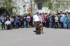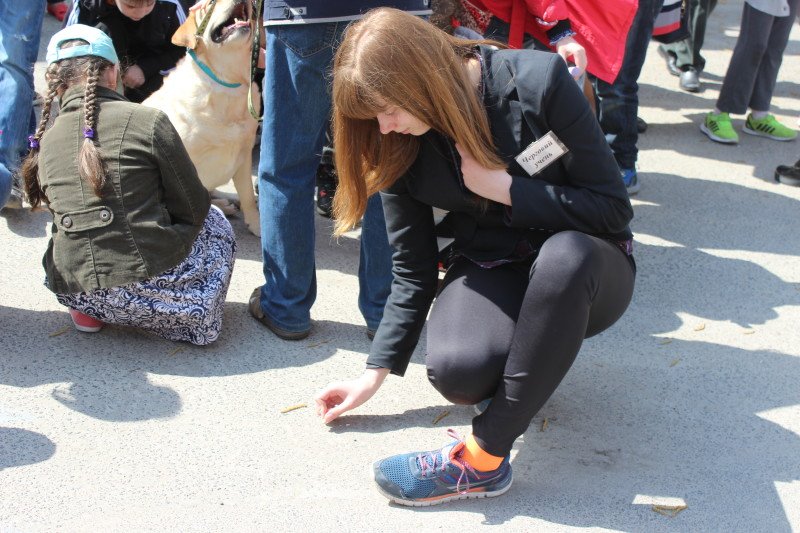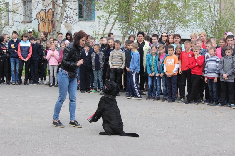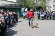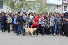Діти із величезним захватом спостерігали за трюками дресированого собаки під керівництвом професійного кінолога, та з не меншим захопленням сприйняли й псів- каністерапевтів.