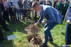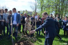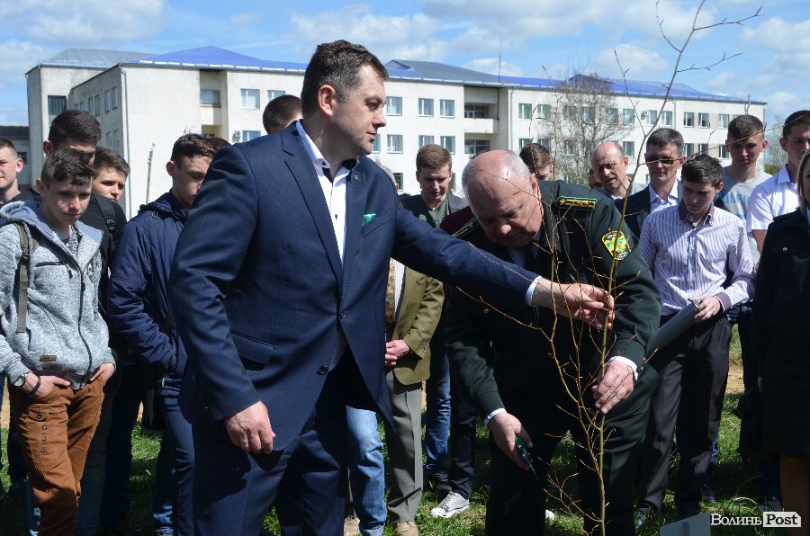 Сьогодні посадили три символічні дерева – бук лісовий, дуб звичайний та липу дрібнолисту. Днем раніше на території вишу першокурсники лісогосподарського факультету спеціальності «Лісове господарство» висадили більше півсотні дерев.