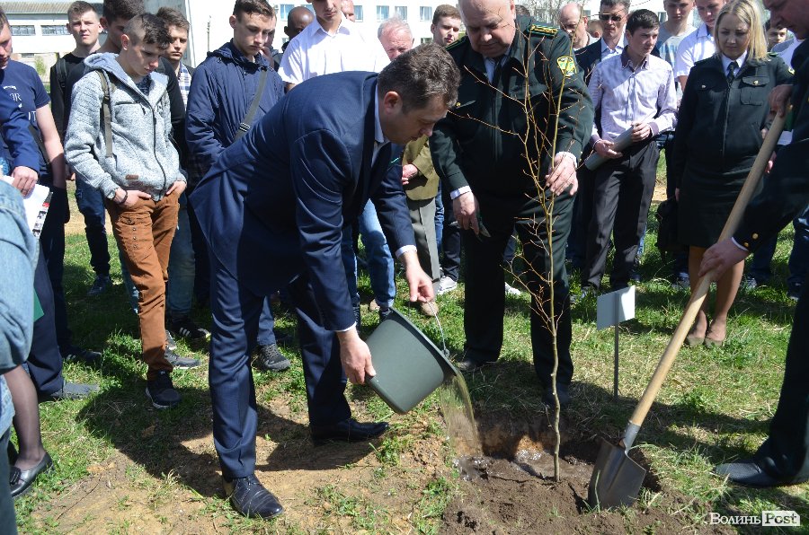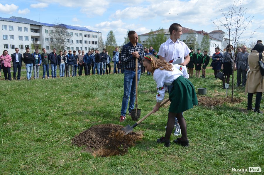 Головний спеціаліст Волинського ОУЛМГ Володимир Неводнічик провів інструктаж, як правильно висаджувати дерева. Опісля всі рушили до місць висадки саджанців та спільними зусиллями посадили деревця. Згодом студенти опустили у яму капсулу часу, в яку умістили побажання від студентів. Відкопають її через 20 років.
