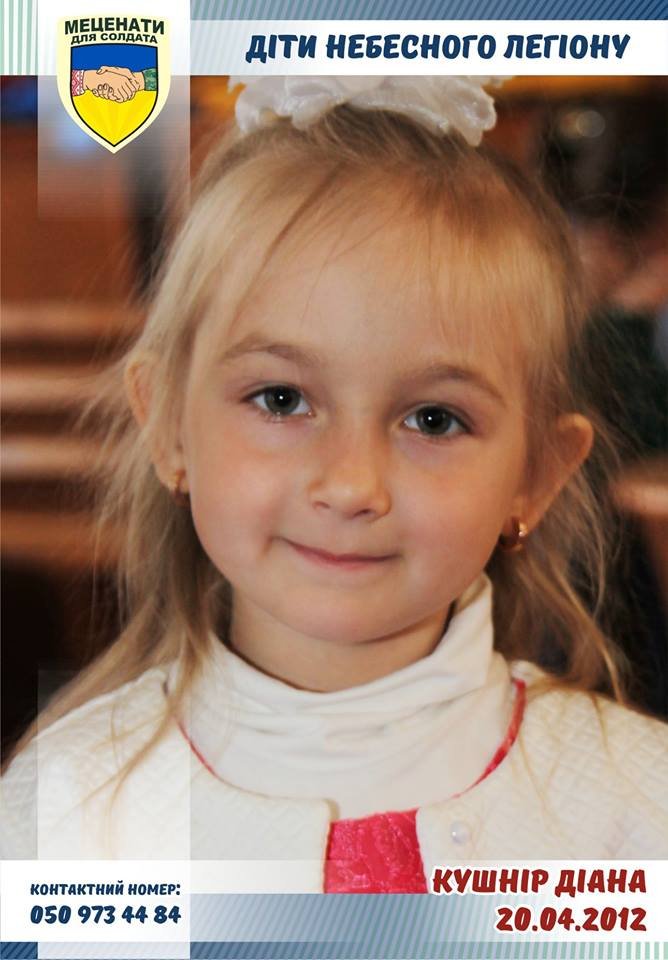 Свій 6-й День народження невдовзі святкуватиме Діана Кушнір. Дівчинка є донькою загиблого на Сході старшого солдата Збройних Сил України Сергія Кушніра. Її татусь брав участь у боях за Савур-Могилу, а загинув 1 серпня 2014 року разом з іншими військовослужбовцями, коли автомобіль «ГАЗ-66», де вони перебували, підірвався на міні.