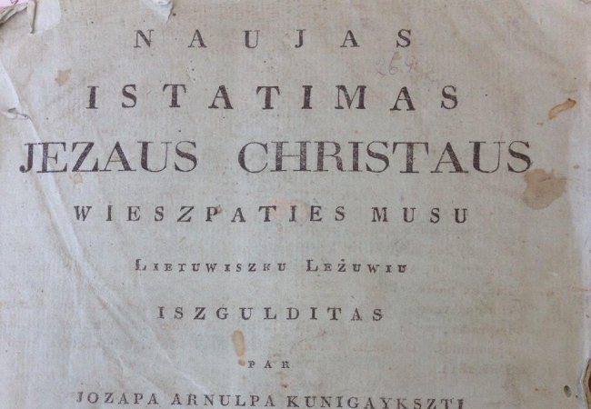 Як з’ясували експерти, видання 1816 року надруковане у Вільнюсі і є першим перекладом Нового Завіту литовською мовою. Книгу переклав єпископ Самогітянин Йозапас Арнульпас Гідраітіс. Переклад його авторства зробив важливий внесок у формування сучасної литовської мови. Примірник з цього видання представлений на виставці Ордену святого Станіслава, що проводиться Національним музеєм у палаці Великих князів Литовських.