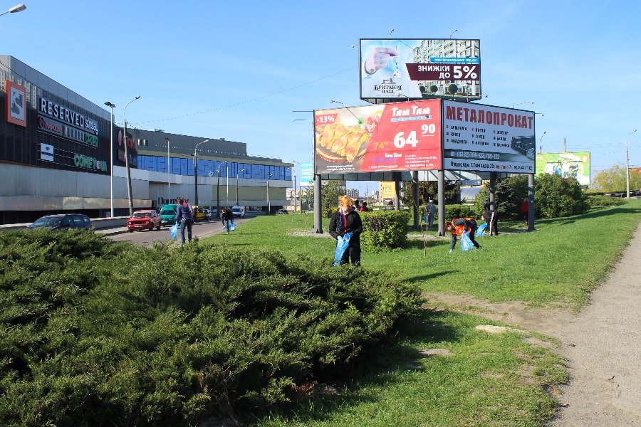 Прибирання відбувалося не лише біля ТРЦ, а й на вулицях, зокрема Соборності та Сухомлинського. Працівники зібрали чимало дрібного сміття.