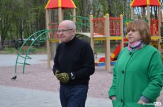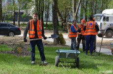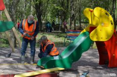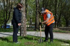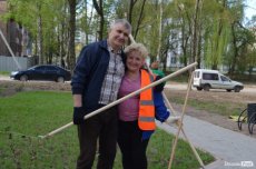 Третій бухгалтер із цієї активної компанії Надія Кержаневська взагалі прийшла прибирати «сімейним підрядом»: поки жінка згрібала листя, її чоловік Ігор лагодив дитячі гойдалки. Після того, як скрізь було заметено, а старе листя повантажили, аби відвозити на смітник, працівники «ЛДБК» взялися садити деревця.