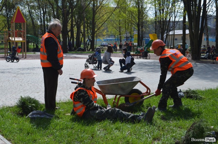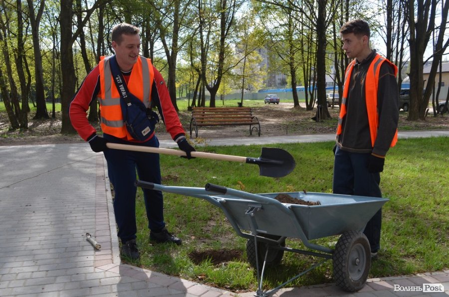 Граблі, мітли і нові деревця: весняна толока у луцькому парку. ФОТО