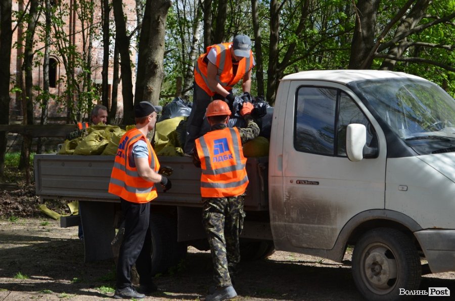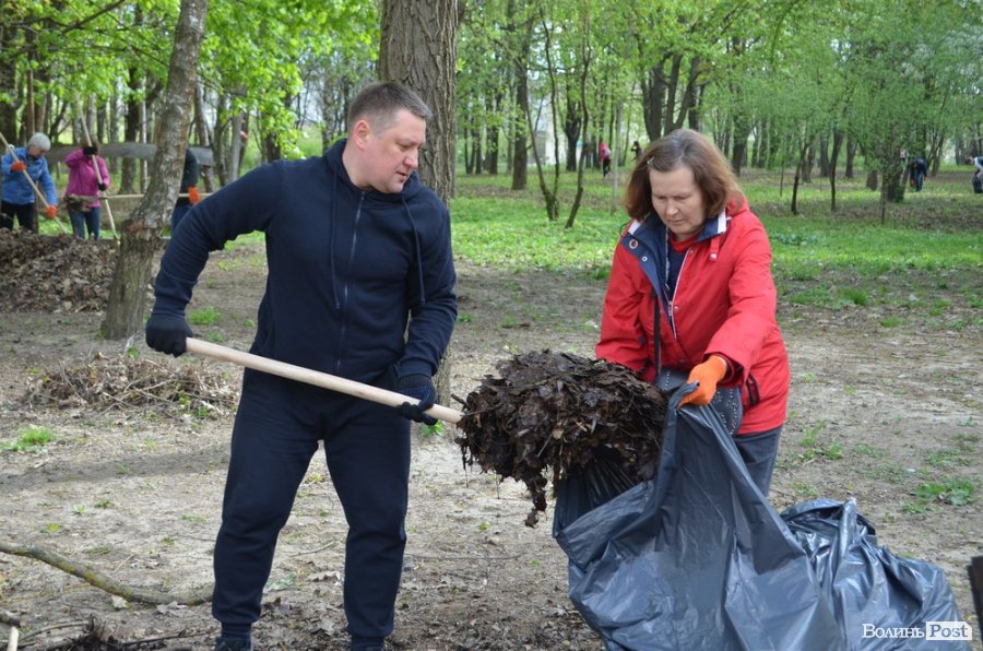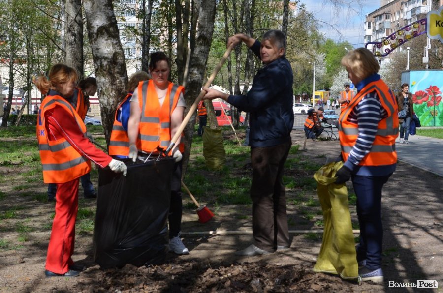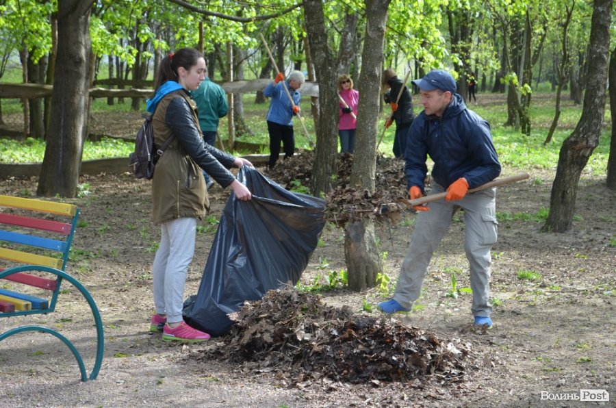 У Луцьку нині сотні людей, озброївшись граблями і сміттєвими пакетами, вийшли прибирати місто. Схожі на мурашок, які безперервно щось носять та перекладають, сотні небайдужих до чистоти лучан метушилися у парку на розі вулиць Конякіна та Гордіюк – прибрати зелену зону прийшли школярі, активісти із «Національного Альянсу» та десятки працівників Будівельної компанії «ЛДБК».