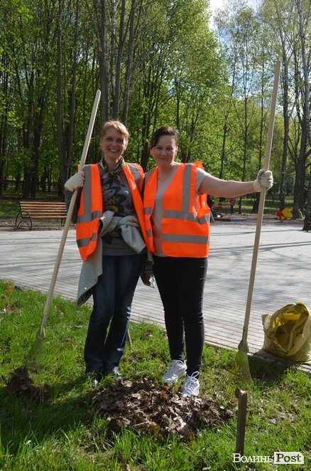 Поряд активно щебечуть та загрібають троє жінок - це бухгалтери «ЛДБК». Жінки розповідають, що дуже щасливі, бо на прибирання прийшло багато людей. Окрім того, подібні акції – гарний приклад для тих, хто думає, чи варто прибирати.