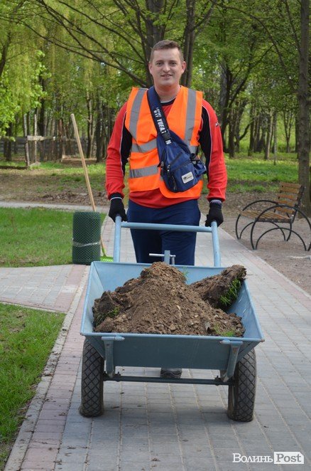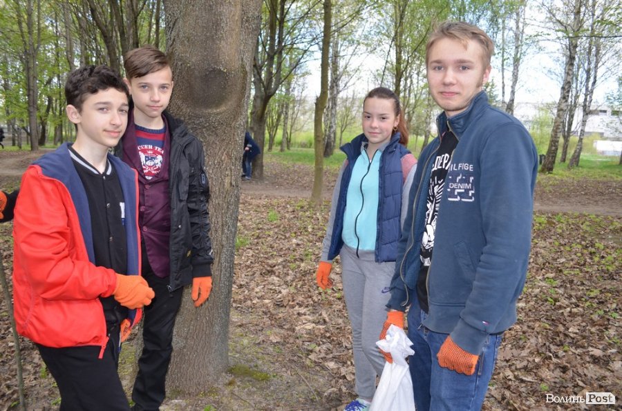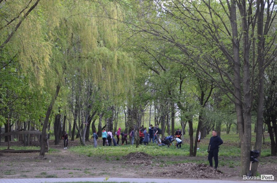 Трохи далі углиб парку «розсипалися» школярі та студенти, а також активісти організації «Національний Альянс», які також хочуть бачити Луцьк чистим. «Альянсівець» Віталій Мамець розповів, що нині він тут із друзями, та акція, на його думку – не просто прибирання, бо має ще й виховне спрямування.