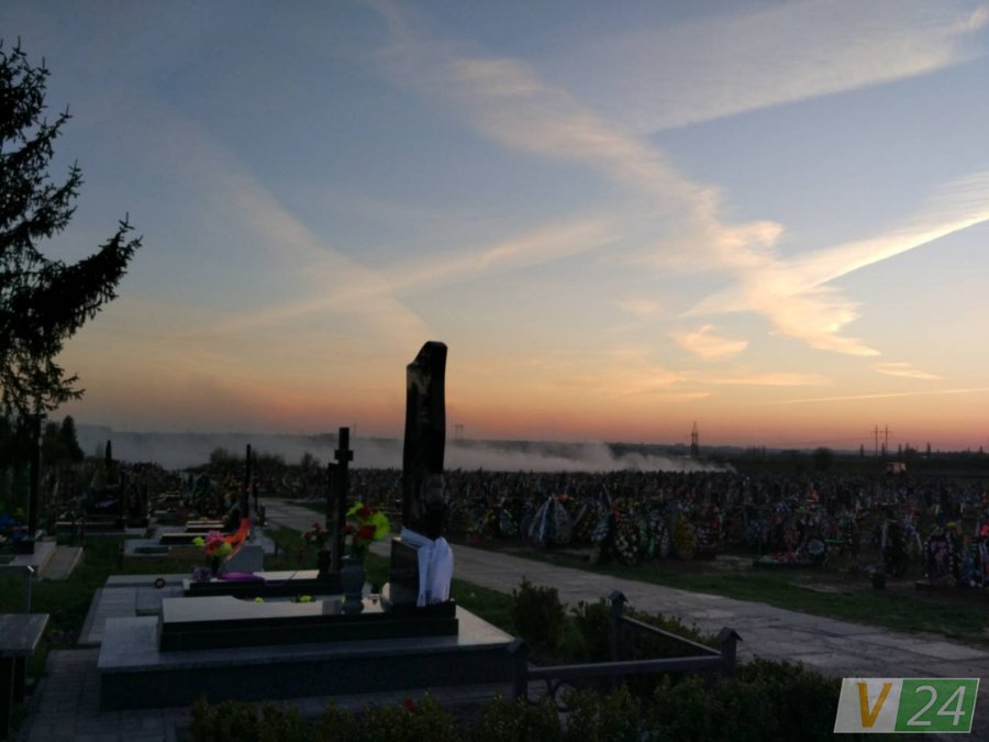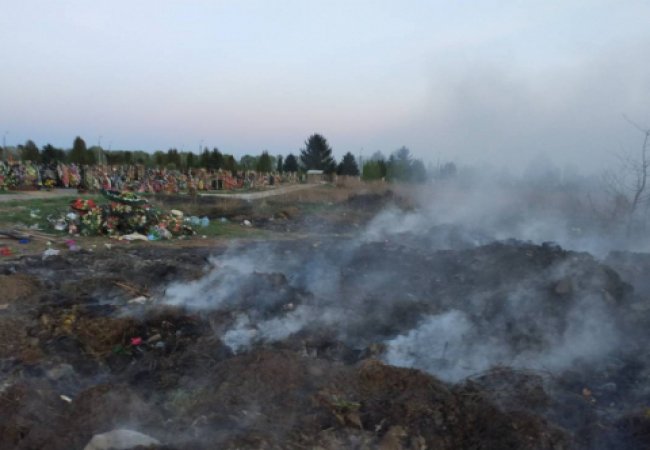 На луцькому кладовищі, що у селі Гаразджа, підпалили гору пластикових вінків та квітів.