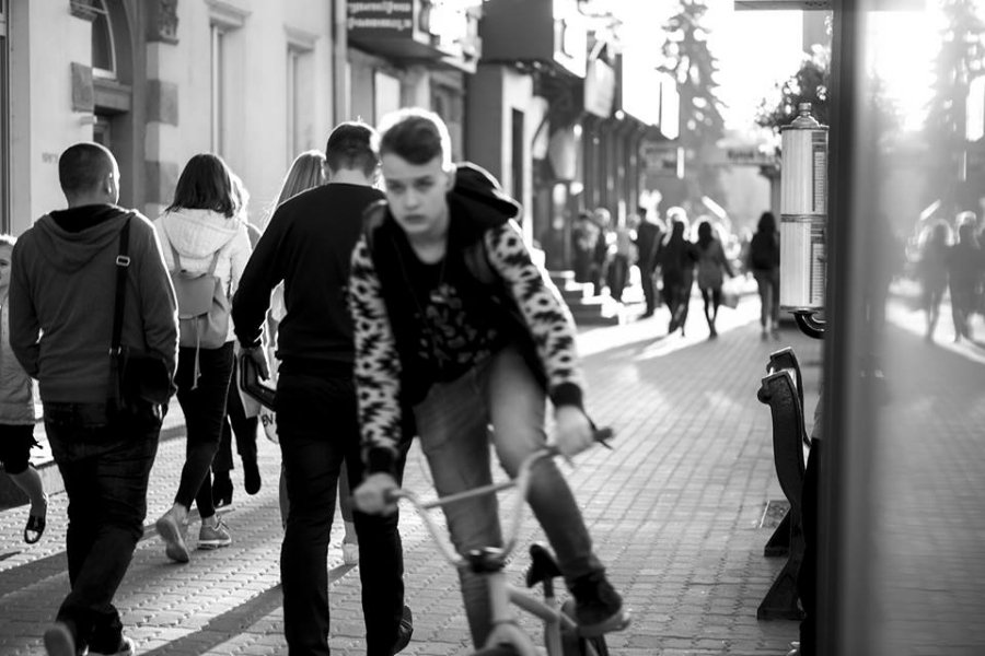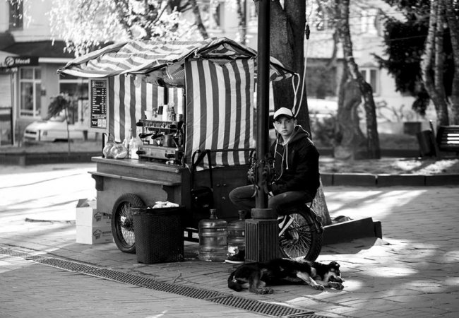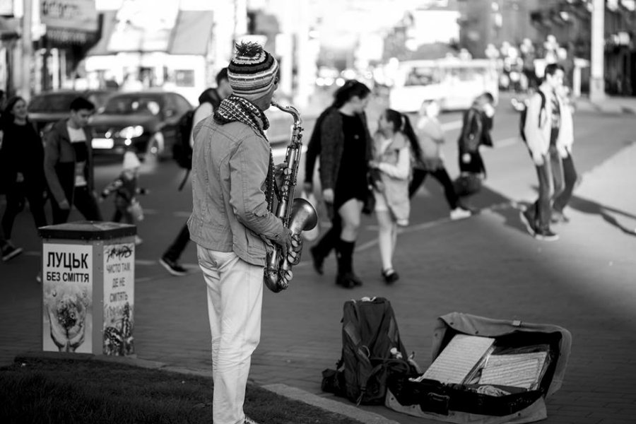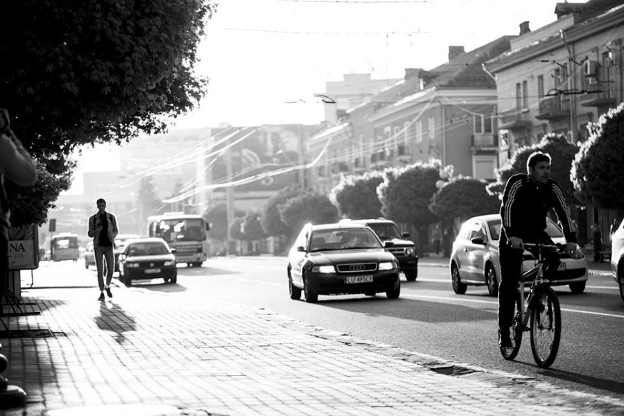 Луцький фотомитець зсвітлинив миті із життя міста - хлопця, що продає каву на пішохідній вулиці, дітей, що ганяють на велосипедах, та людей, що гріються у променях теплого весняного сонця.