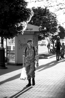 В об'єктив потрапили звичайні перехожі а також цікаві штрихи із їх життя - татуйовна рука, що тримає кухоль пива, таранька, накладена у кошик, гелеві кульки у руці кучерявої дівчини та саксофоніст, який грає навпроти ЦУМу. Окрім того, Косюк зловив цікаву грі світла та тіней, які відкидають різні предмети на будинки, вулицю чи перехожих.