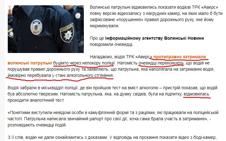 До слова, у відео, знятому журналістами Інформаційного агенства ВолиньPost, добре чути, що саме насправді "запікали" у сюжеті "Аверсу". Відео доводить, що патрульна не вживала нецензурної лексики.