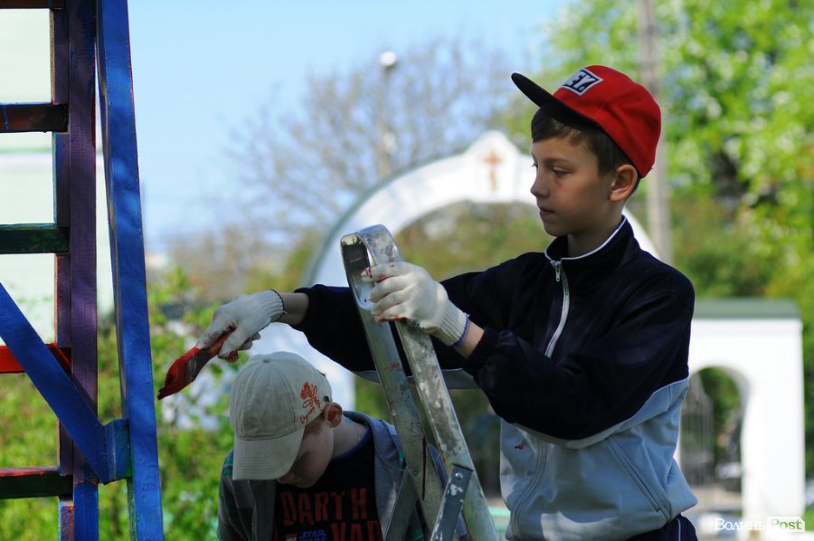 Біля церкви також активно відбуваються весняні роботи. Частиною закупленої фарби учні недільної школи фарбують дитячий майданчик та відновлюють кольорові малюнки на стінах. Вони кажуть, що це важливо, адже у красивому місці хочеться проводити час. І робити це стає набагато приємніше.