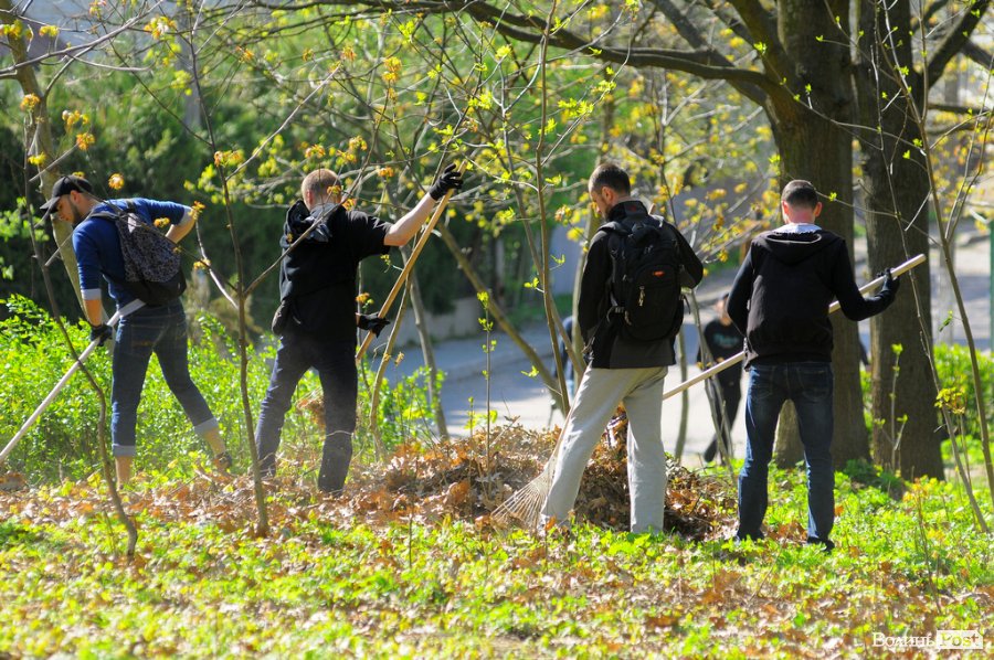 За якихось кілька годин з-під куп опалого листя показується красива зелена трава, а розмальовані вандалами лавки блистять на сонці свіжою фарбою. Парком гуляють люди з дітьми, і насолоджуються результатами роботи сотень рук.