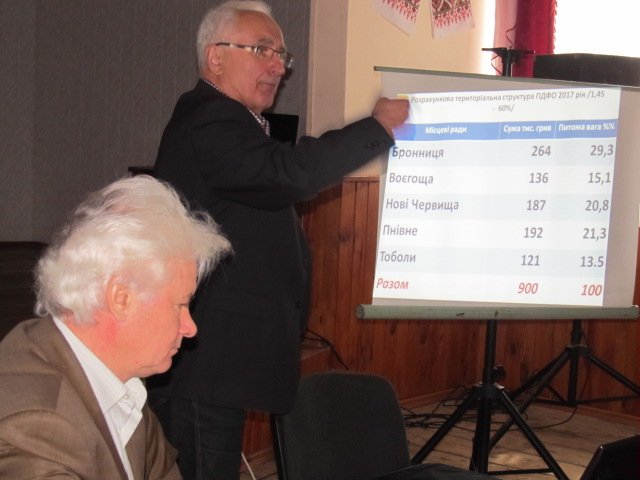 Він також наочно продемонстрував фінансову перспективу потенційної Пнівненської ОТГ, де господарюватимуть спільно близько 10 тисяч людей і яка об’єднає Пнівненську, Броницьку, Воєгощенську, Тоболівську і Новочервищанську сільські ради.