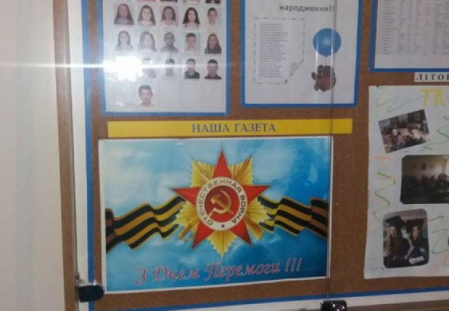 «Студенти першого курсу готували газету до Дня перемоги. Вони намалювали орден і георгіївські стрічки. Конкурс газет ще не відбувся, її ніхто не бачив, бо вчора ввечері тільки повісили. Це прикрий випадок», - зазначив Ігор Макарчук.