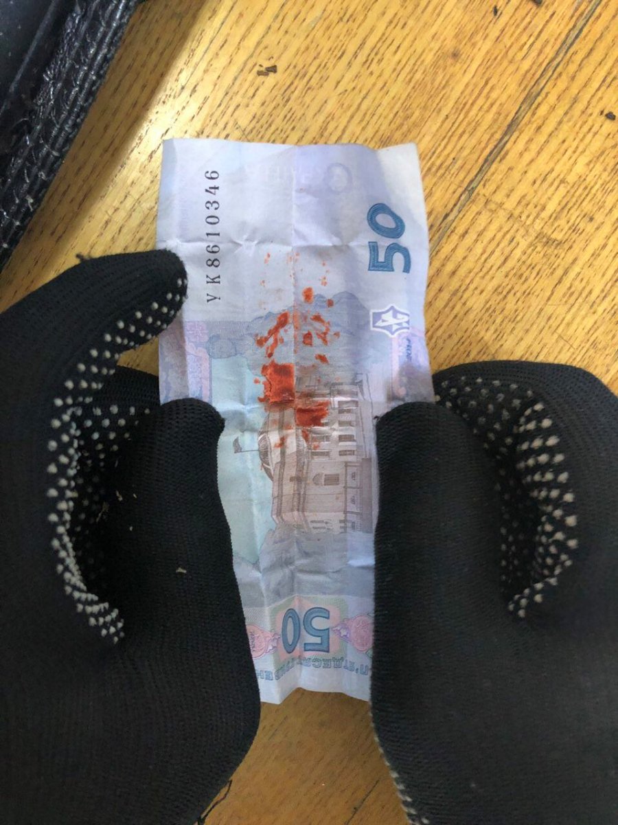 Крім пігулок, у гаманці водія виявили порошкоподібну речовину світло-коричневого кольору вагою брутто 1 грам, яка була загорнута у купюру номіналом 50 гривень.