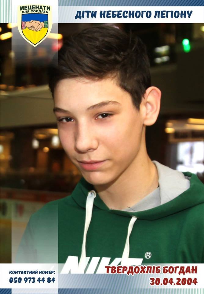 Інформація для благодійників: Богдан Твердохліб – невдовзі 14 років (30.04.2004). Ріст: 170. Розмір взуття: 42. Розмір одягу – дорослий М. Подарунок: будь-який сюрприз на ваш розсуд.