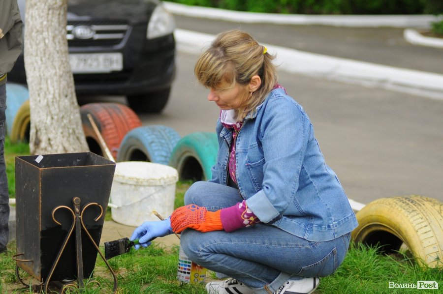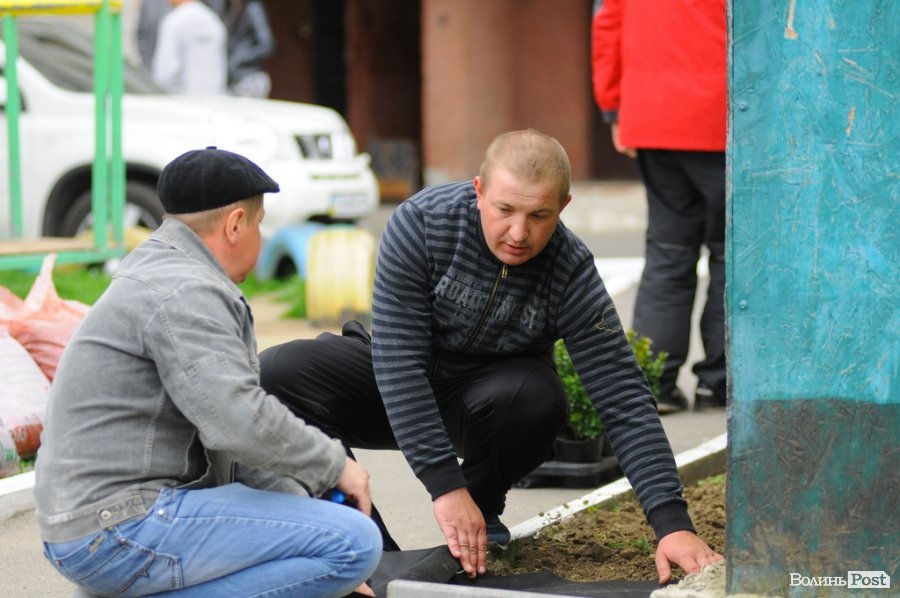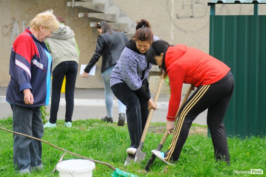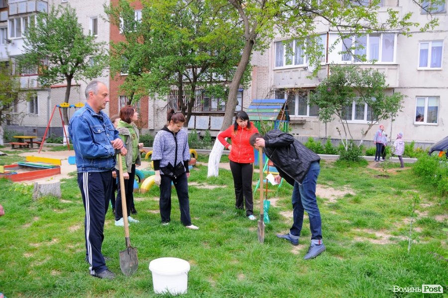 Ближче до вечора 26 квітня частина лучан вийшли на толоку в двір, аби покращити його. Роботу організував голова ОСББ Сергій Матвіюк. Всі мешканці розбрелися по подвір’ї і зайнялися кожен своєю справою. Хтось перекопував ділянку землі для клумби, хтось підсипав на неї землю, хтось ремонтував лавочки, а хтось фарбував.