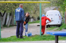Працювали всі весело, завзято й злагоджено. Шуму додавала й дітвора, яка збоку бавилася в м’яч. Проте хтось із малечі підходив інколи, аби допомогти. Вмикали вони також і музику, яка розважала присутніх.