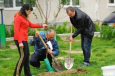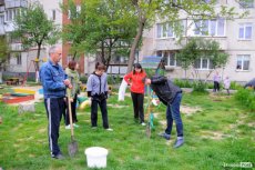 «Нещодавно ми садили кущі, сьогодні висаджуємо дерева, згодом зробимо ще щось, і наш двір буде гарним та охайним», – ствердила мешканка будинку га Гетьмана Мазепи.