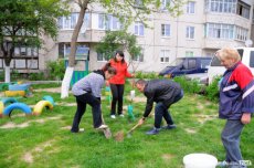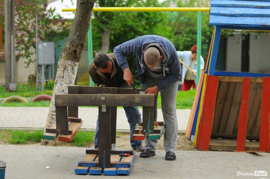 У луцькому дворі на Гетьмана Мазепи, 49 мешканці впорядкували територію: посадили дерева, кущі, пофарбували дитячий майданчик, побілили дерева та полагодили лавочки зі столом.