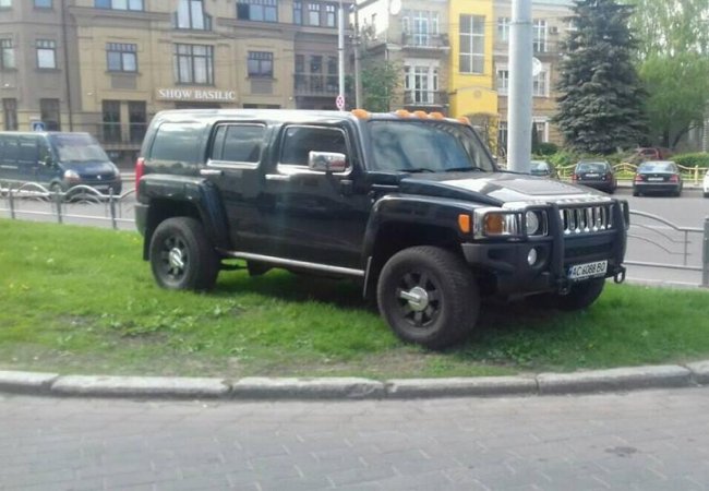 У центрі Луцька автохам припаркував свій «сарай» на газоні. ФОТО
