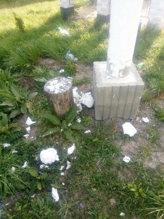 «Наш монастир вкладає свою душу і в нього. Але очевидно комусь не до душі старання братії і всіх причетних до розбудови. Станом на сьогодні - закиданий сміттям (яке братія прибрала перед Великоднем), розбиті ангели біля альтаки, поламаний дитячий майданчик, розібрана бруківка біля прапора, повиривані зелені насадження і поломані гарні сортові дерева», - йдеться в дописі.