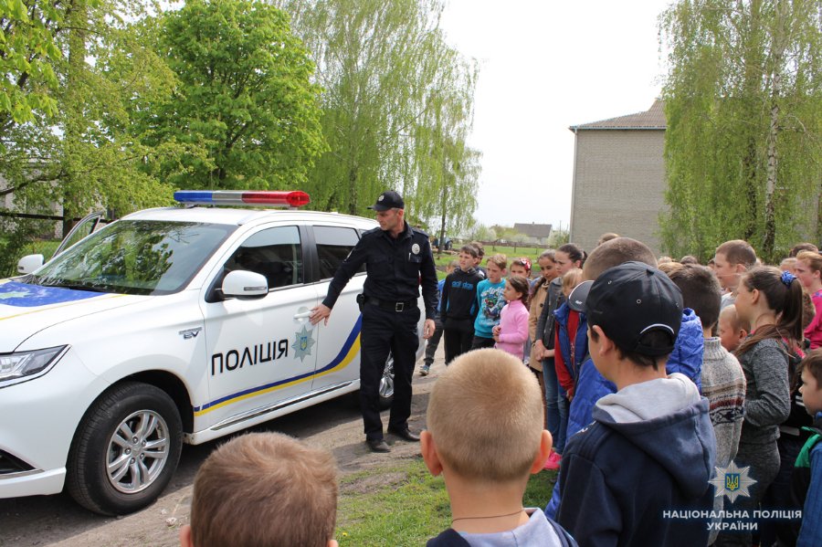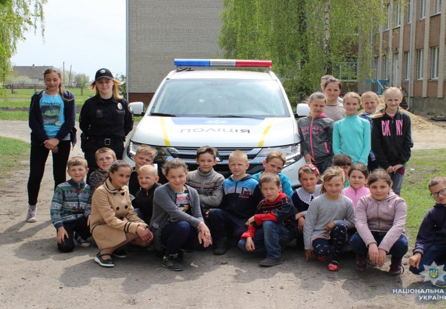 Школярам також продемонстрували службовий поліцейський автомобіль, обладнаний рацією, сиреною та гучномовцем.