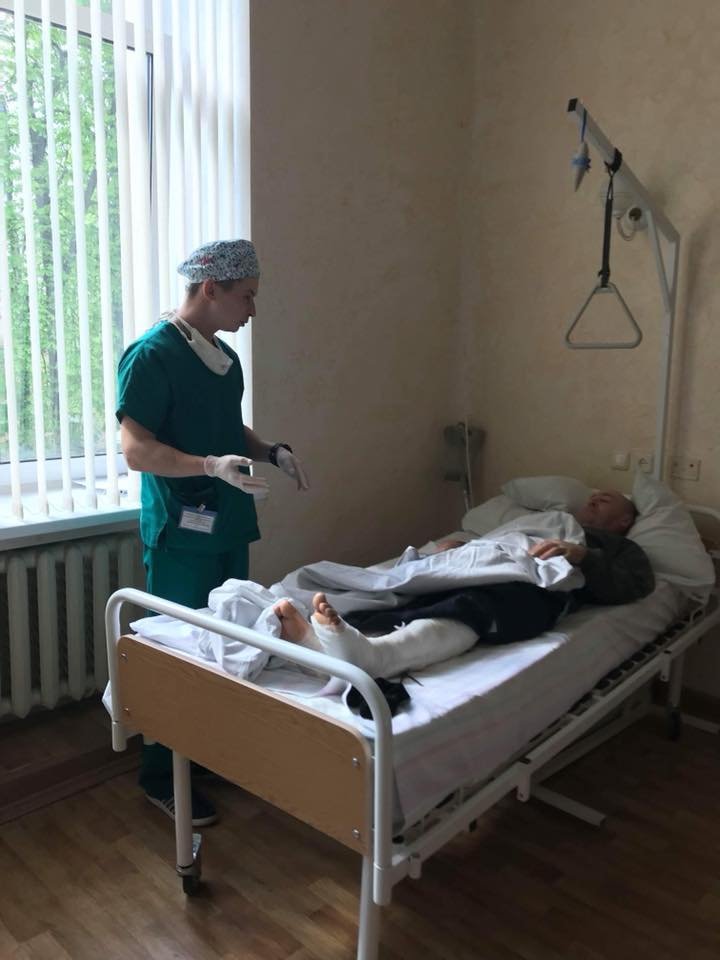 «Чисельні осколкові поранення обох ніг.. Вчора до ночі хірурги травматології Київського шпиталю оперували бійця- сшивали і чистили понад 20 ран... Виймали осколки... Операція пройшла успішно , але тривала біля 4 годин... Сьогодні зранку Юрій почуває себе добре. Та досі не може повірити, що поранення може вибити надовго його з передової.. Питання до лікарів лише одне: «Коли я повернуся на службу?» - гаписала Попова.