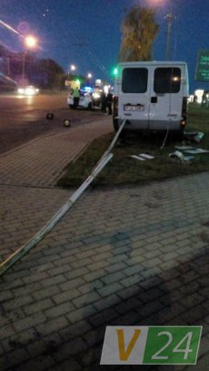 У Луцьку бус після зіткнення з легковиком розтрощив світлофор. ФОТО