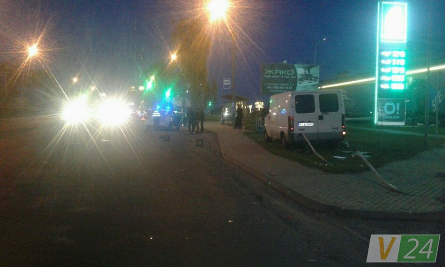 У Луцьку на вулиці Рівненській зіткнулися бус та легковик, у результаті чого бус вилетів на тротуар та збив знак і світлофор.