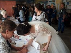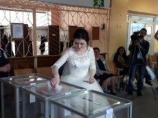 Окрім того, усі охочі просто таки на виборчій дільничі привітали щойно створену сім'ю із важливим кроком у житті.