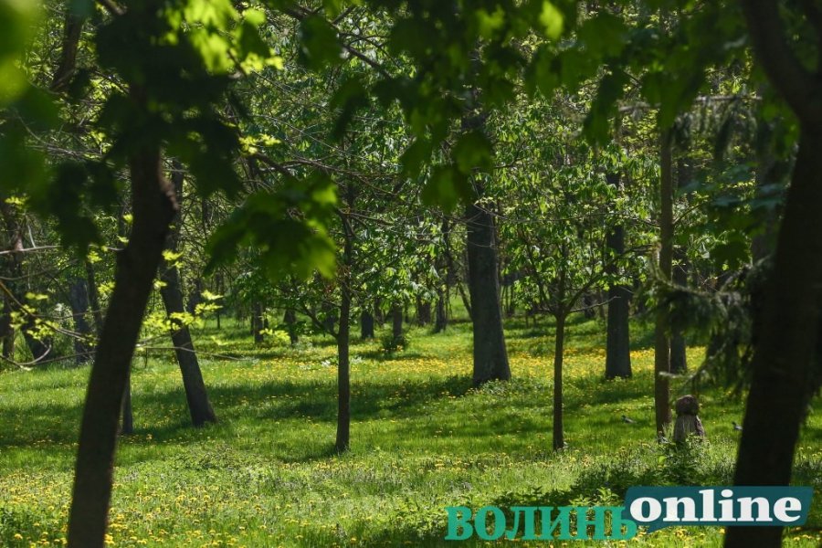 Центральний парк Луцька перетворився на квітучо-зелений острівець,оповитий співом птахів.