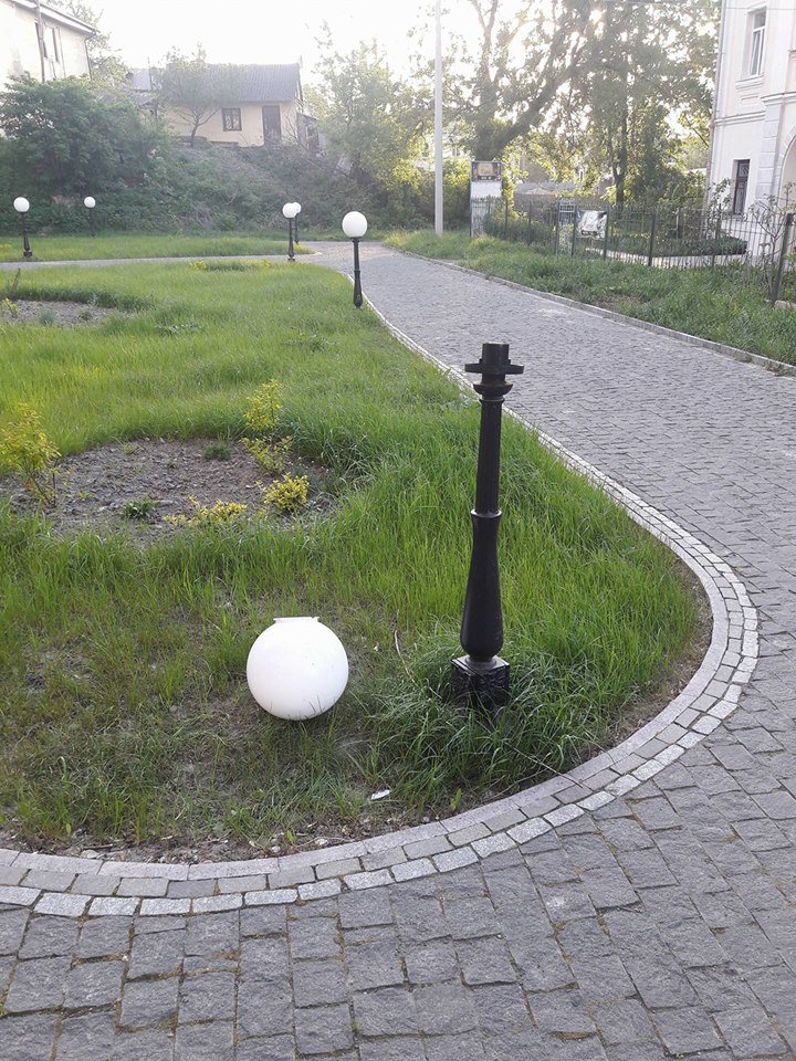 «Прогулювались біля Луцького замку та побачили такий безлад. Гарні доріжки, вкладені бруківкою, а от ліхтарі вже встигли зламати. Поруч ще один лежав на землі. Можливо є питання до якості, проте не без допомоги порядних, вихованих людей вони зіпсовані», - написав Пушкін.