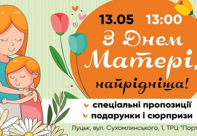 Торгово-розважальний центр «ПортCity» запрошує дітей та дорослих на розваги. 13 травня відбудеться святкування Дня матері із захопливою програмою.
