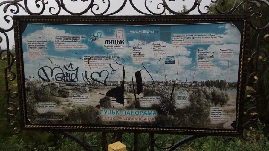 У Луцьку вандали обмалювали інформаційну таблицю на оглядовому майданчику. Наразі панораму відновили.