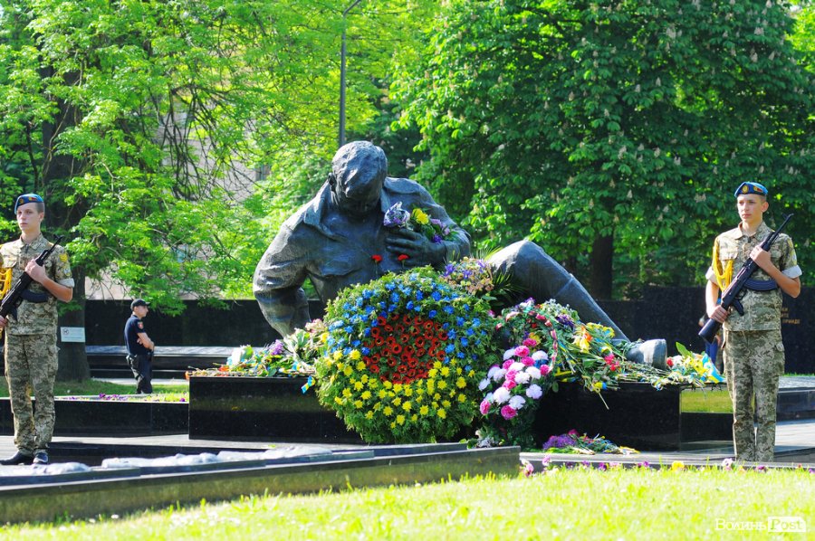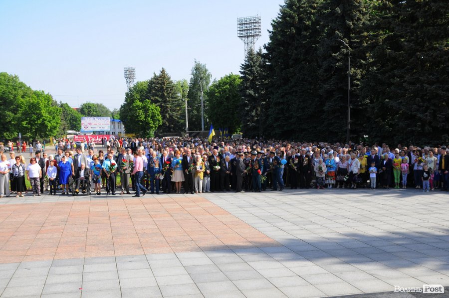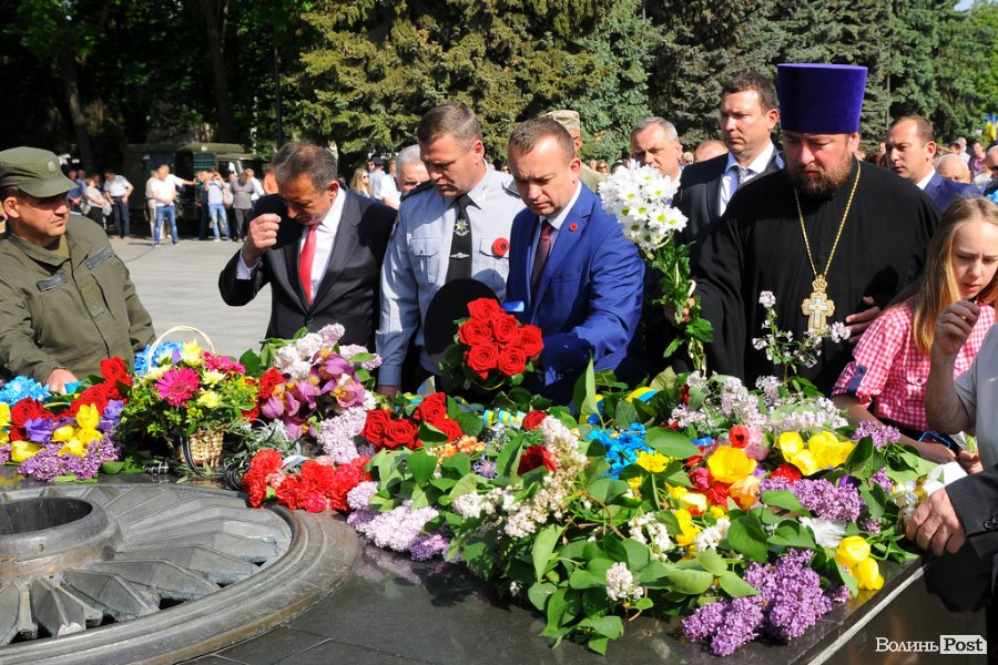 На меморіальному комплексі «Вічна слава» у Луцьку сьогодні, 9 травня, людяно. Тут зібрались ветерани, священики, посадовці, молодь, аби вшанувати загиблих у Другій світовій війні.