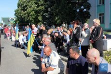 У Володимирі-Волинському люди на колінах зустріли кортеж із тілом загиблого в зоні бойових дій військовослужбовця із Нововолинська Олега Пушкарука.