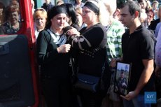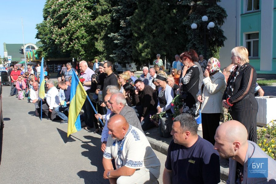 Щоб провести в останню дорогу воїна, біля Володимир-Волинської міської ради ще з 08:00 почали збиратися люди. Зустріли тіло загиблого о 09.00 на колінах.