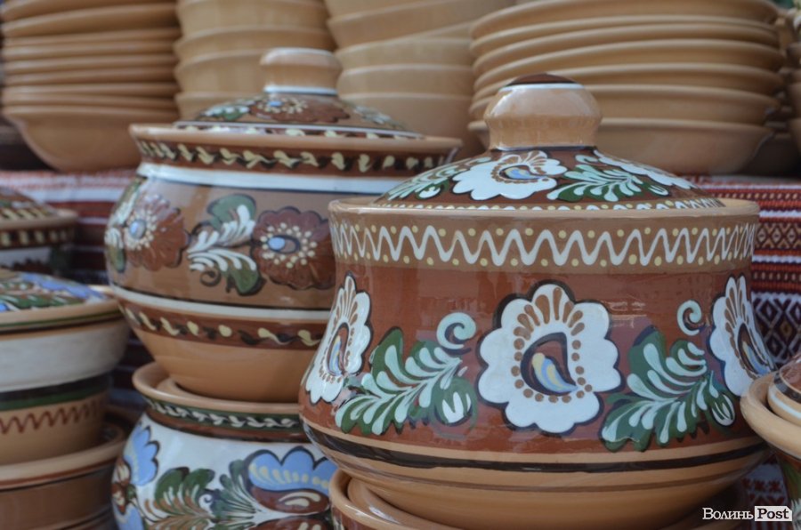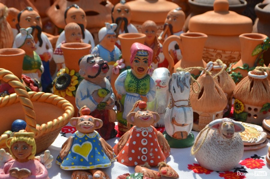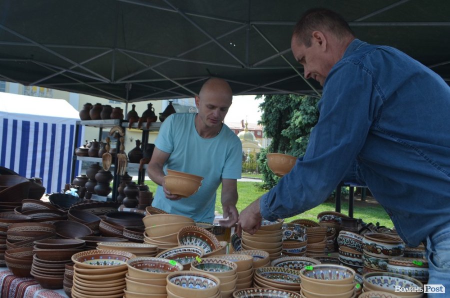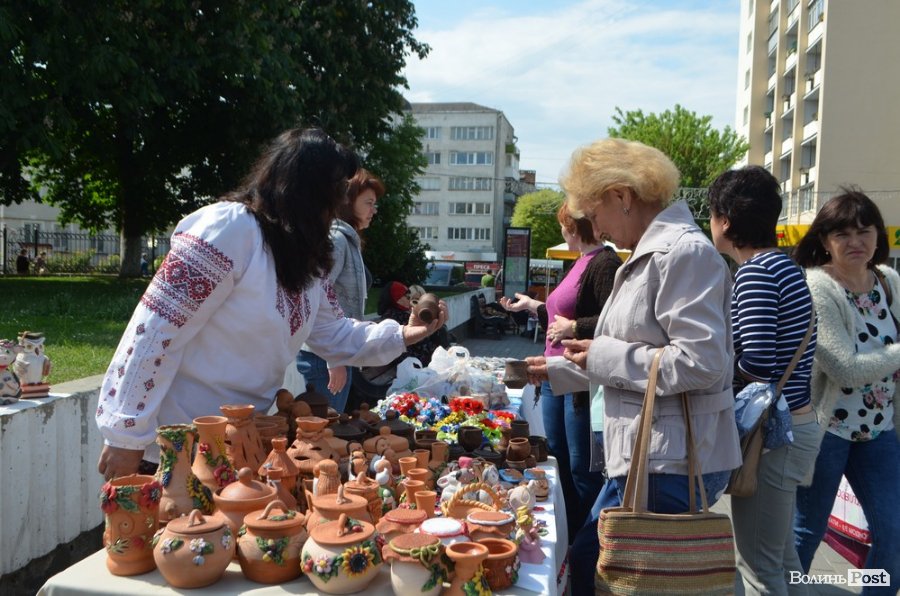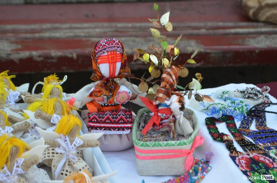 На Театральному майдані лунає музика та облаштували свої ятки торговці продукцією народних ремесел. Тут можна придбати цікаві дерев'яні вироби чи традиційний глиняний посуд, красиві прикраси із бісеру та ляльки-мотанки.