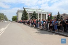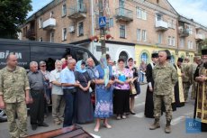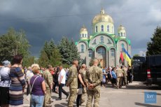 Після вшанування пам’яті загиблого бійця в центрі міста, колона рушила до собору. У Свято-Духівському храмі за упокій Олега Пушкарука відслужили панахиду.